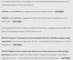Ceny specjalne na konsultacje ze mną oraz czytania osobiste w formie plików video